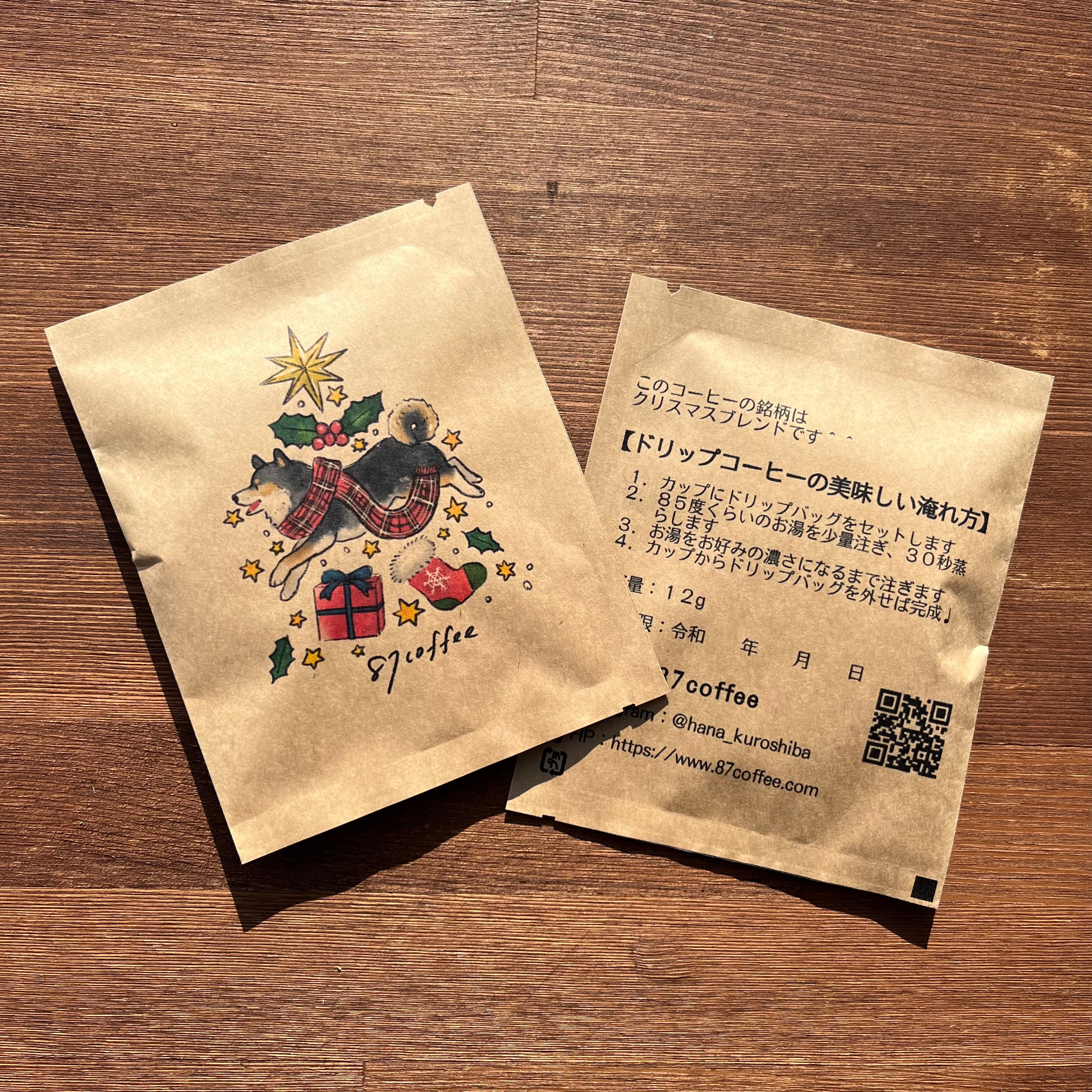 ドリップバッグの中身は黒柴はなパッケージの中深煎り87オリジナルブレンドと、